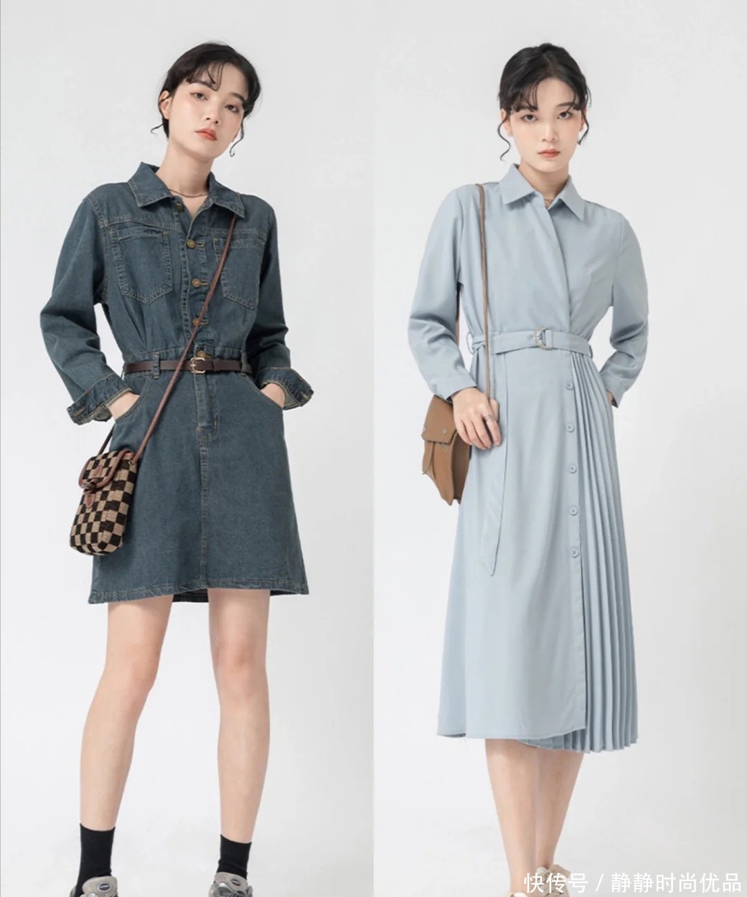 不过,长款样式的连衣裙,最好具备腰带的支撑,才能在后续的调整比例上出力不少。浅蓝色的百褶衬衫裙,它有着律动感,腰带一收,曲线的展现将会更加显著。