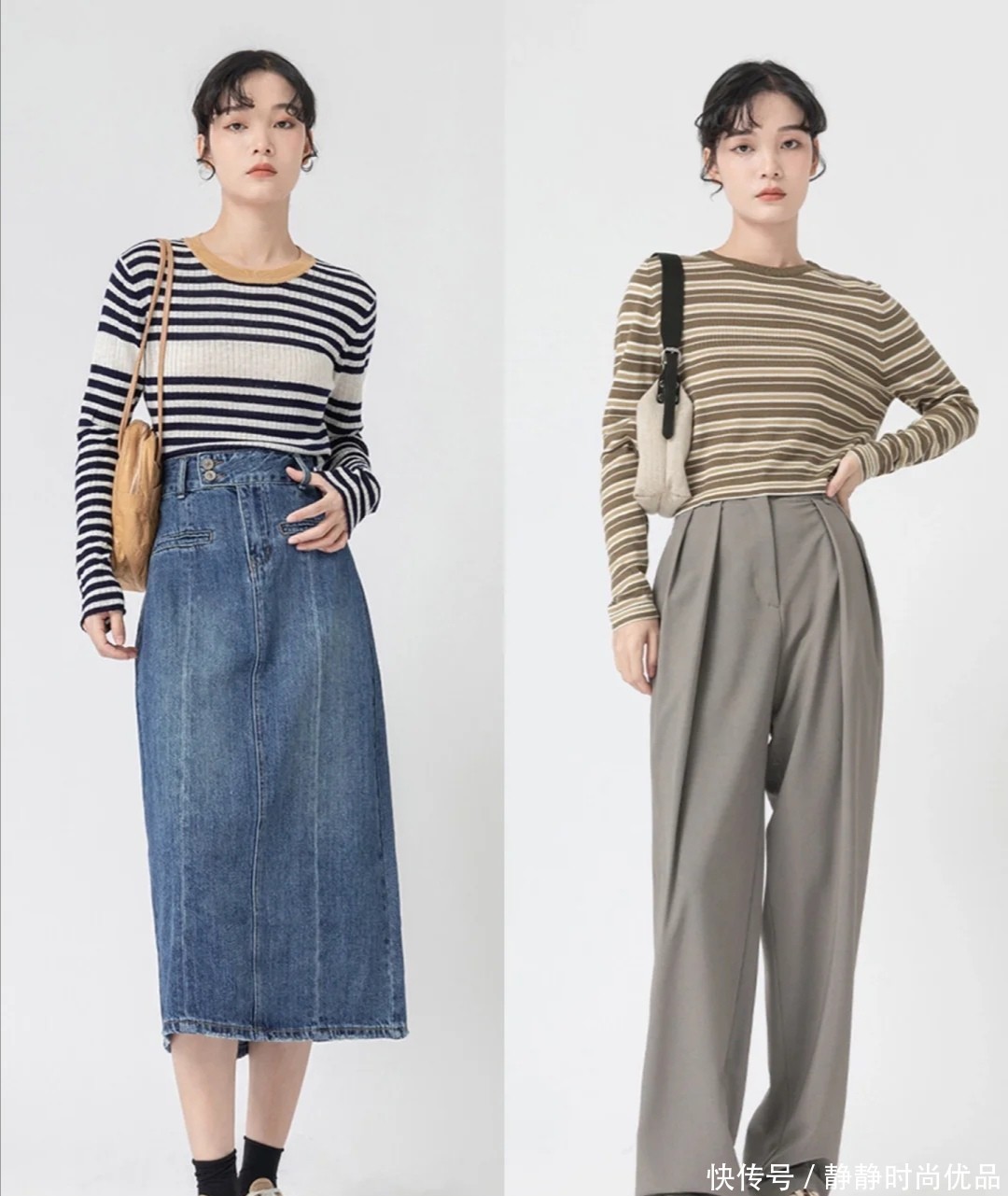 条纹上衣,它们选用的颜色不夹杂着任何的明艳的感觉或者是花哨的风格,可以将配色失误的风险降到极低。搭配宽大的阔腿裤或者是简单的牛仔过膝半身裙,都合适。